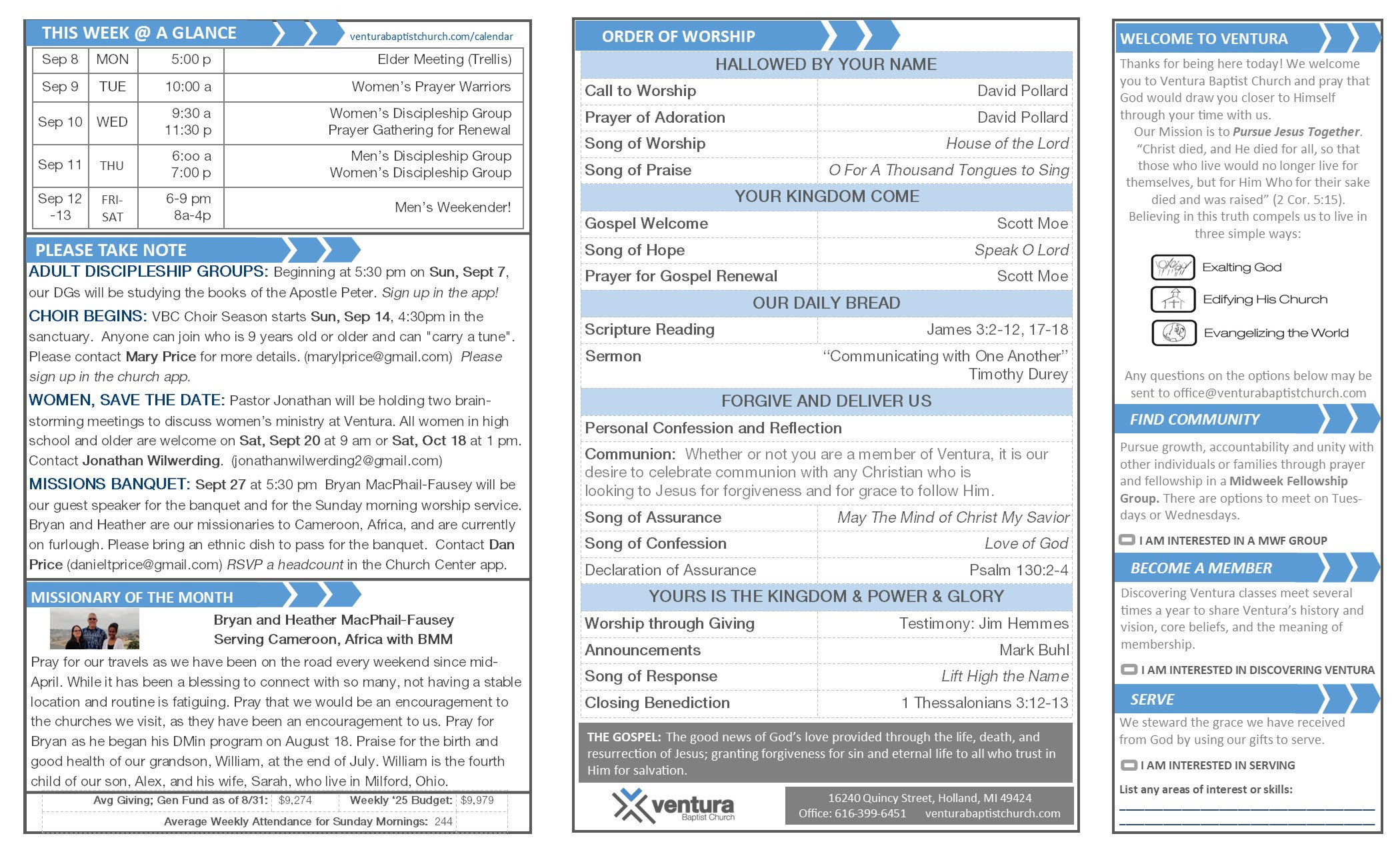 Youtube Stream Bulletin Fighter Verses Welcome Booklet